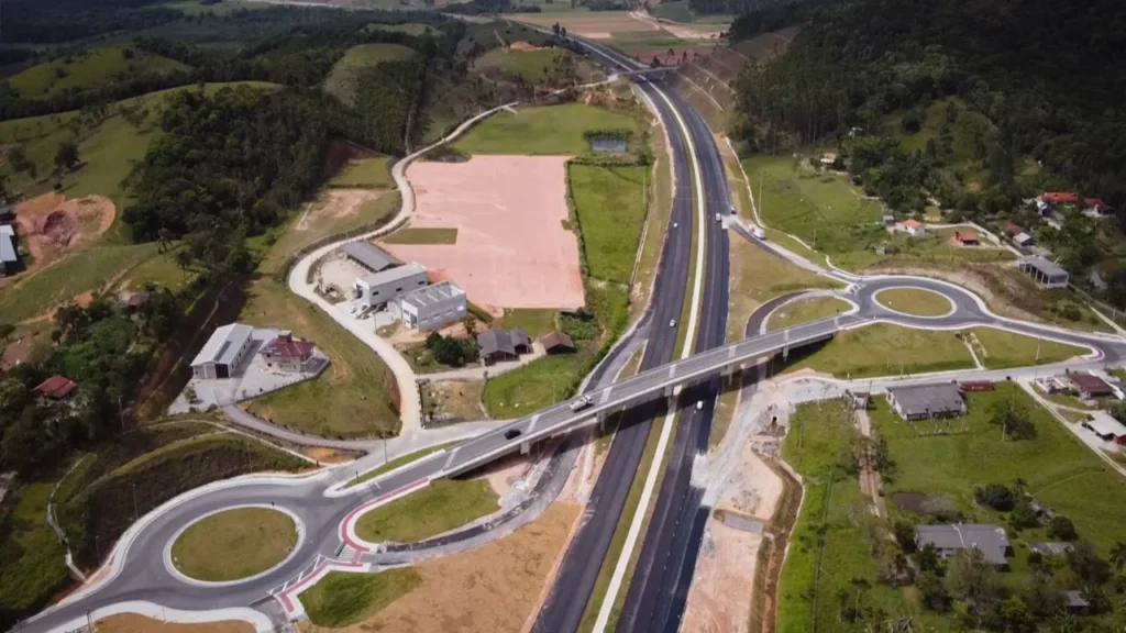 Uma parte importante desse investimento de R$ 100 milhões envolve as intervenções mais focadas nos acessos e saídas. Isso ajuda a organizar melhor o tráfego local e o de passagem. Já estão em funcionamento as alças de saída no km 252 e a alça de acesso e saída no km 250, que também conta com uma rotatória.
